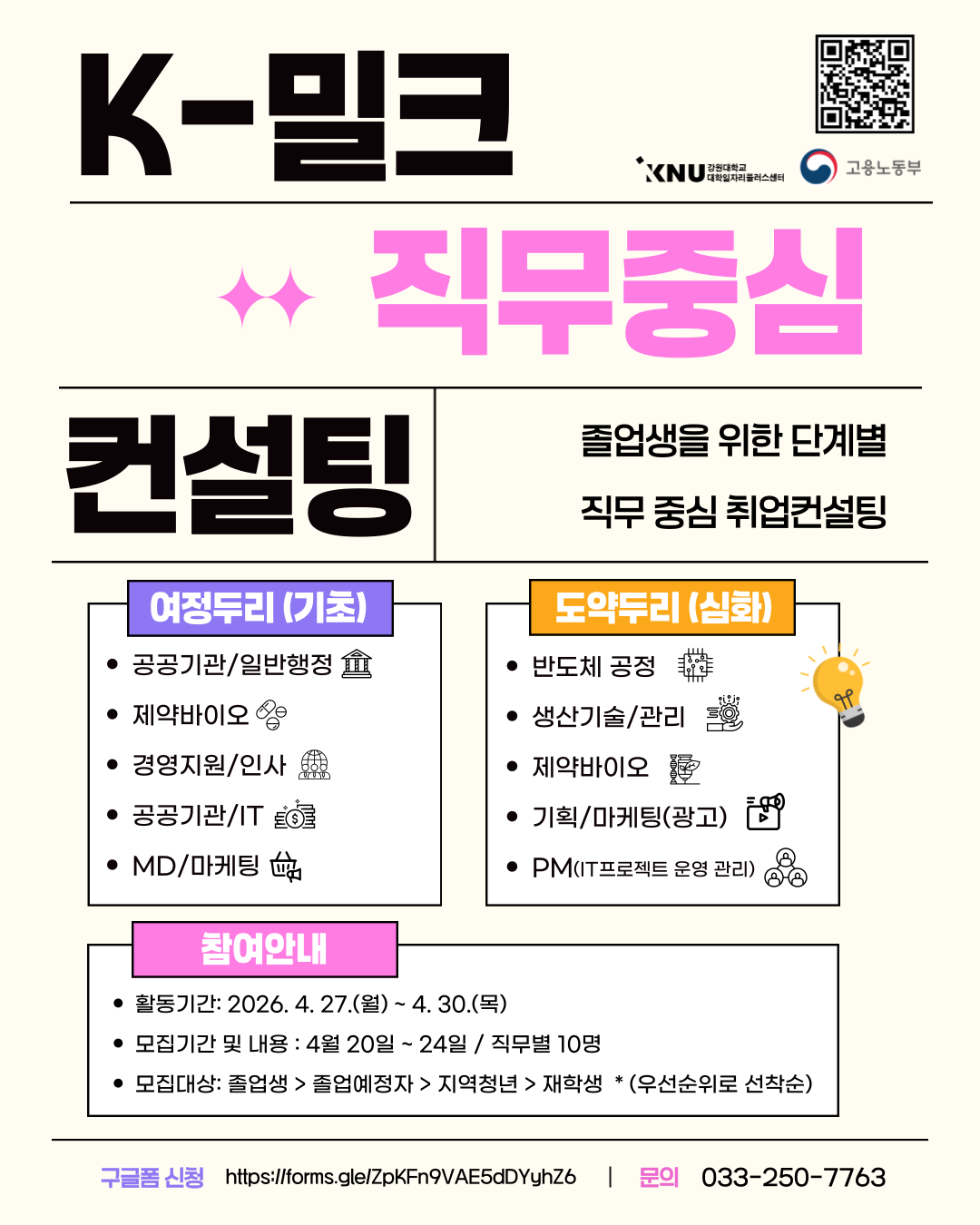 나. 문의사항: 대학일자리플러스센터 이해진 컨설턴트 033)250-7763