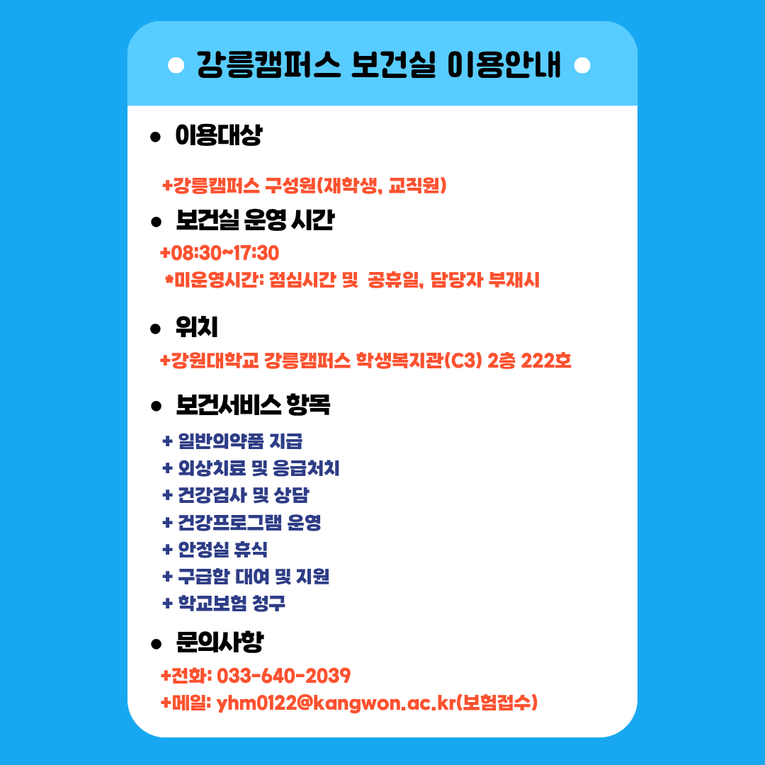 [기타] [보건] 강릉캠퍼스 보건실 이용안내