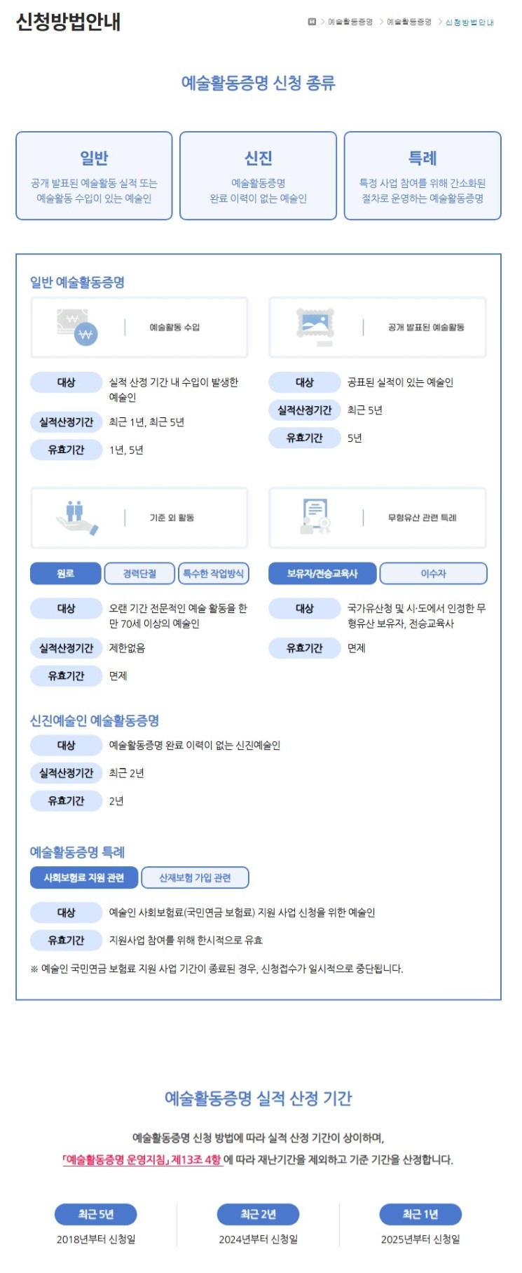 ※ 예술활동증명은 원칙적으로 대한민국 국적을 보유한 예술인만 신청가능 합니다.