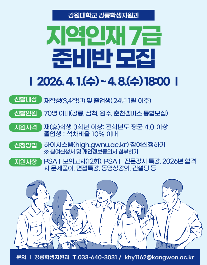 2026학년도 강릉캠퍼스 지역인재7급 취업지원 프로그램 참여인원 모집