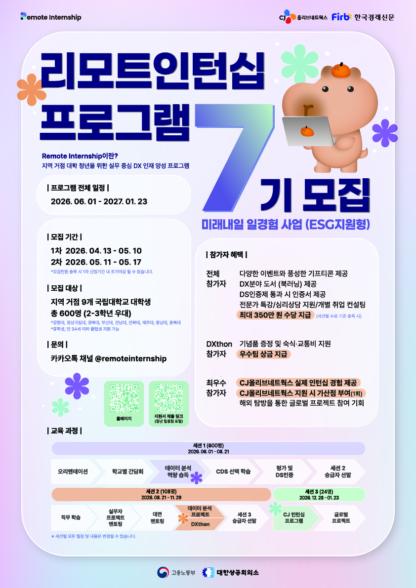 미래내일 일경험 지원사업(ESG형) ‘Remote Internship’ 프로그램 신청 안내