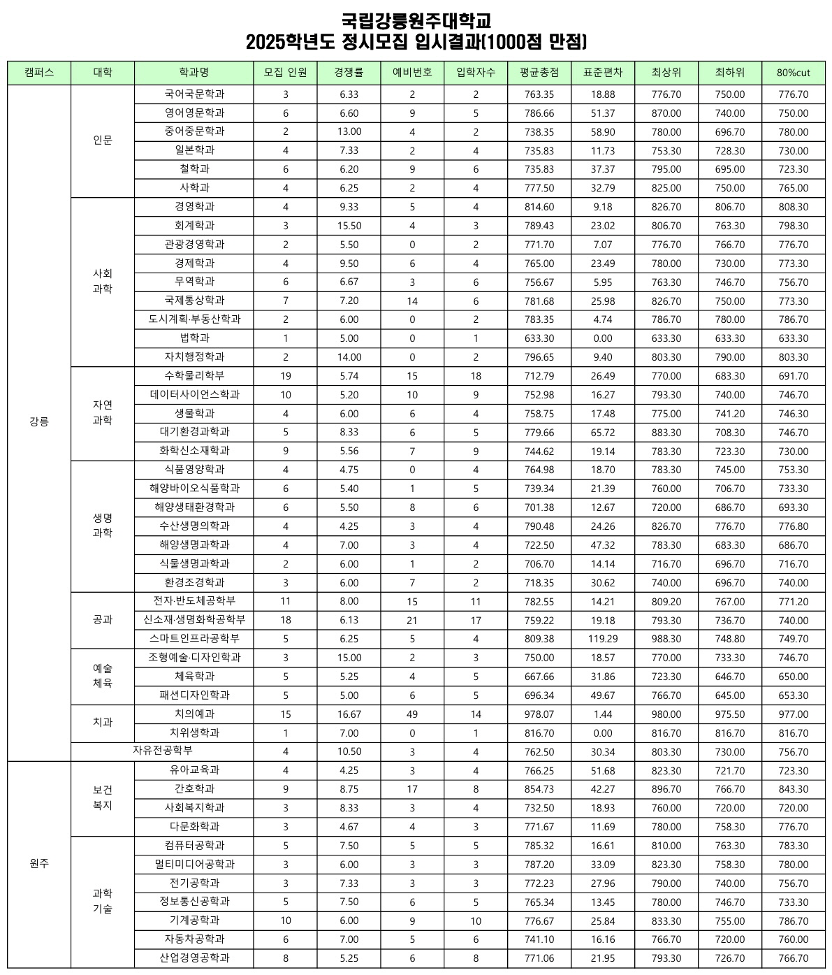 2025학년도 정시모집 경쟁률 및 성적안내(1000점만점): 2025학년도 산출 자료.pdf 다운로드