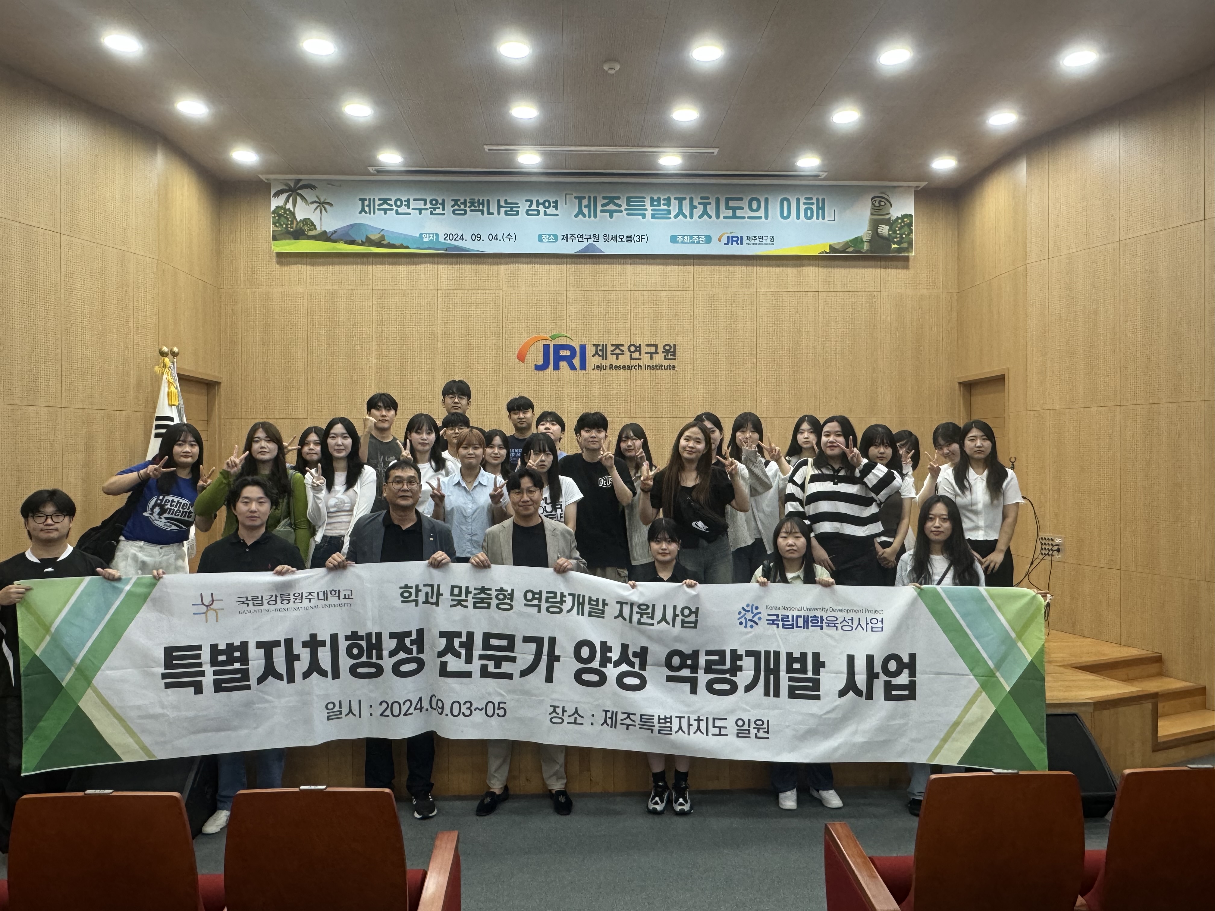 강릉원주대 자치행정학과에서는 지난 2024년 9월3~5일 학과 맞춤형 역량개발 지원 사업 특별자치행정 전문가 역량개발 프로그램으로 제주도 일원을 방문했다.