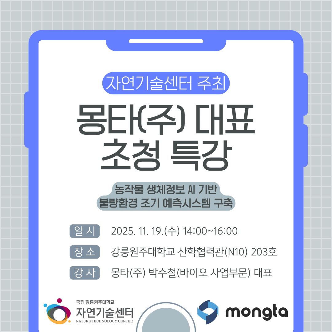 자연기술센터 주최 몽타(주) 대표 초청 특강 안내