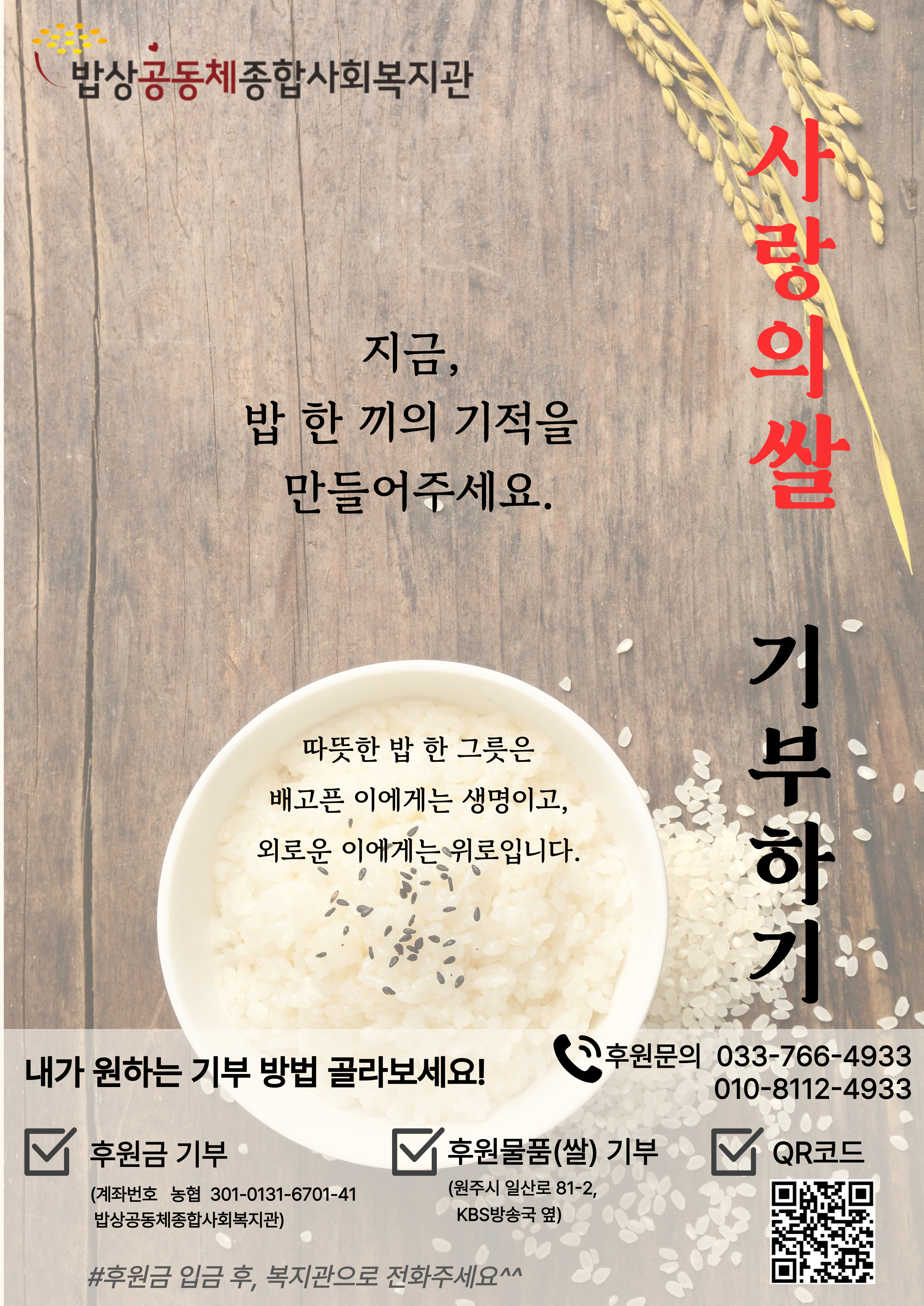 [밥상공동체종합사회복지관] 쌀모금 캠페인 참여 안내