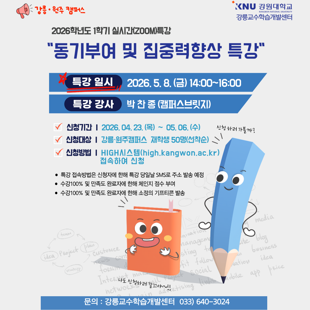 [강릉교수학습개발센터] 2026학년도 1학기 실시간(ZOOM) 학습법 특강 신청 알림