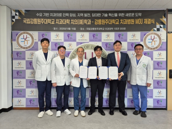 국립강릉원주대학교 치과대학 치의(예)학과, 치위생학과와 강릉원주대학교치과병원이 9월 15일 업무 협약(MOU)를 체결했다.