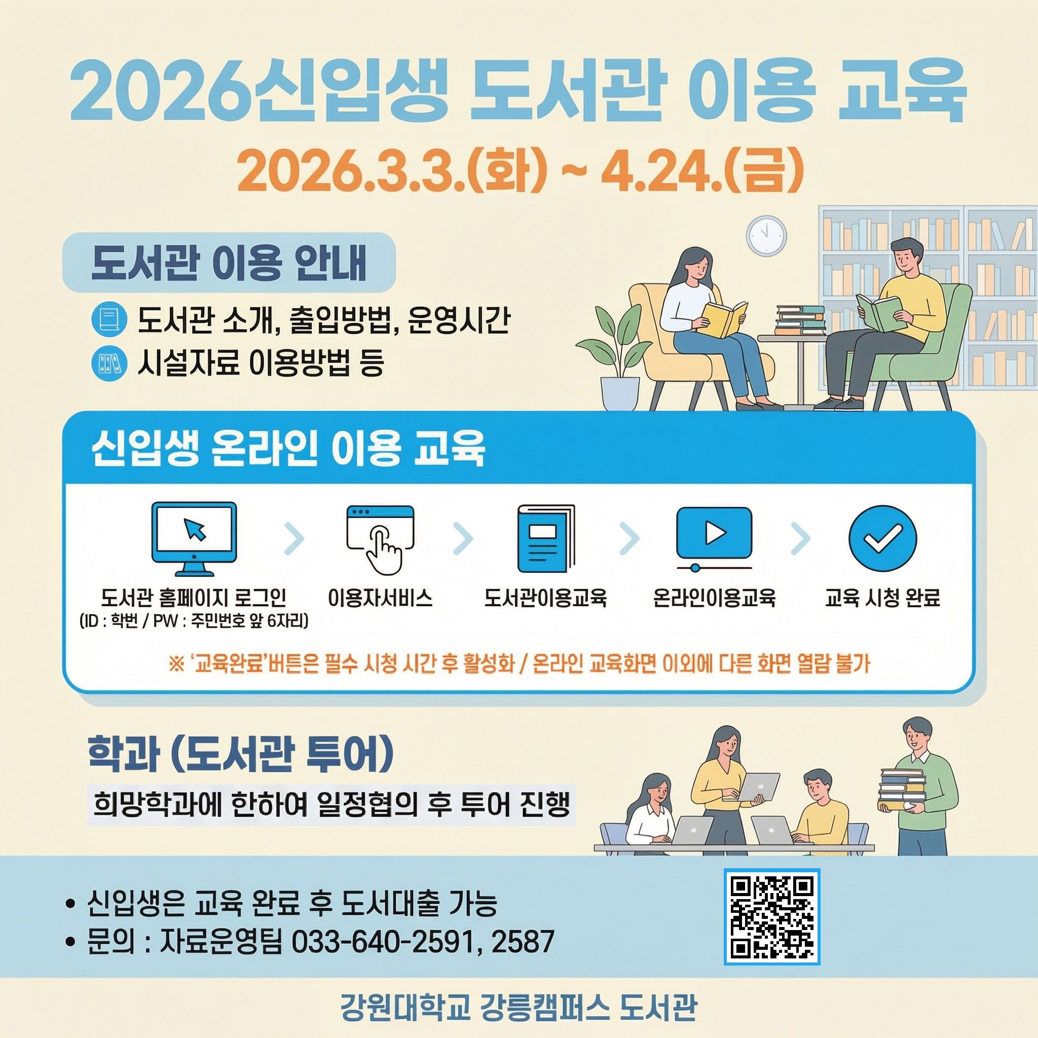 fnctId=bbs,fnctNo=811 2026년 신입생 도서관 이용교육 안내문 작성일 2026.03.03 작성자 김지미 조회수 974 첨부파일 첨부파일이(가) 없습니다. 다음글 이전글 2026학년도 신입생 입학식(OT) 및 신(편)입생 수강신청 안내 김지미 2026-02-24 17:00:39.0
