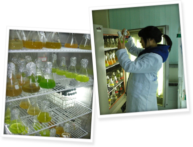 실험실 소개 생명과학2호관 212호 먹이생물 연구실은 동식물 먹이생물에 대한 채집 및 배양과 이를 이용한 해양 바이오에너지 생산에 대한 연구를 수행하고 있습니다. 연구분야 새로운 식물 및 동물성 먹이생물의 개발: 채집, 분리, 배지, 배양 (동물성먹이생물의 종 보유는 국내 최대, 무상 분양) 먹이생물 대량배양생산 system 개발 초기 유생의 종묘생산 시 먹이효율 검정 환경독성 검정을 위한 실험생물의 생산