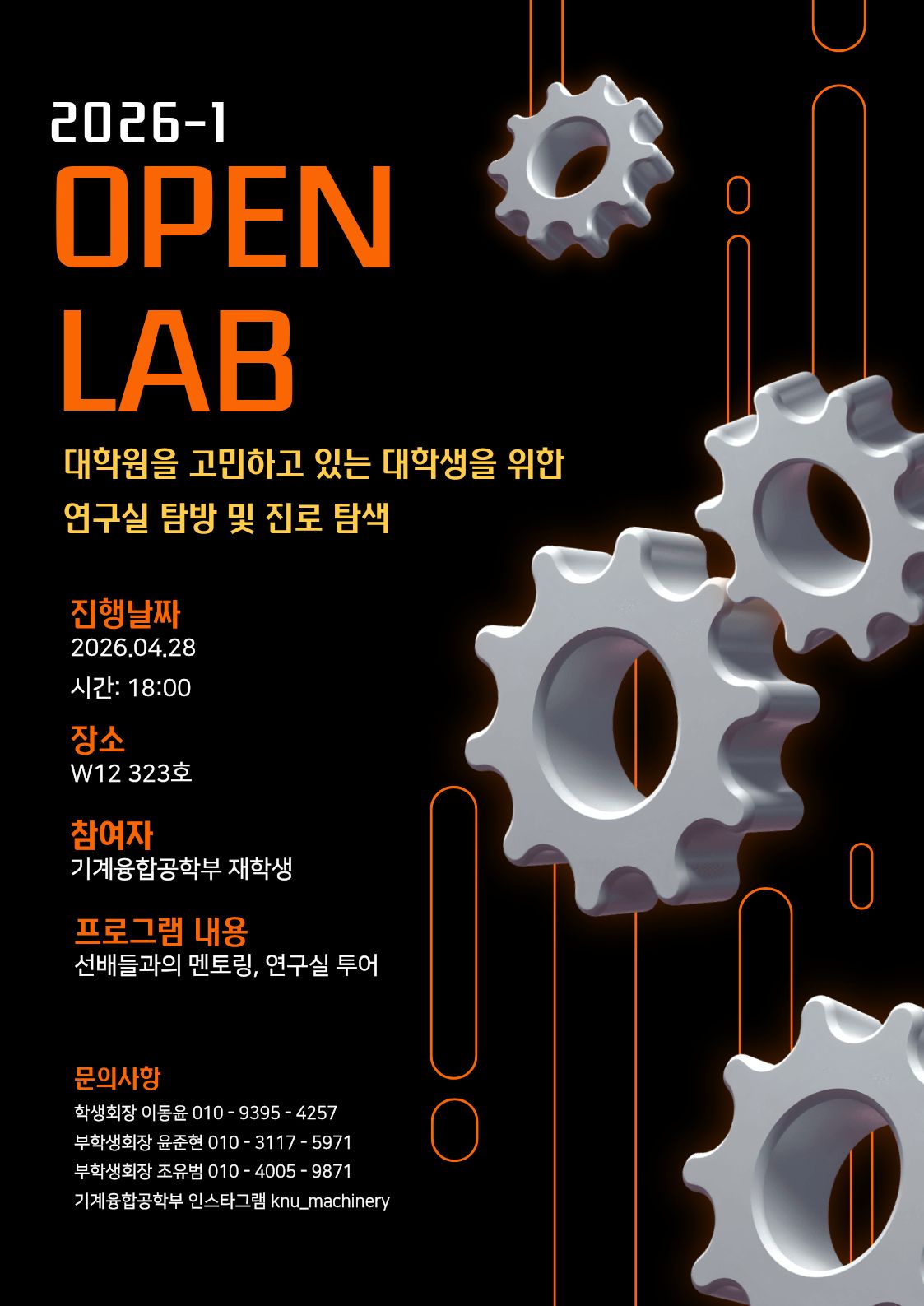 fnctId=bbs,fnctNo=871 [기계융합공학부] 2026학년도 1학기 기계융합공학부 Open Lab 개최 작성일 2026.04.06 작성자 최지은 조회수 388 첨부파일 첨부파일이(가) 없습니다.