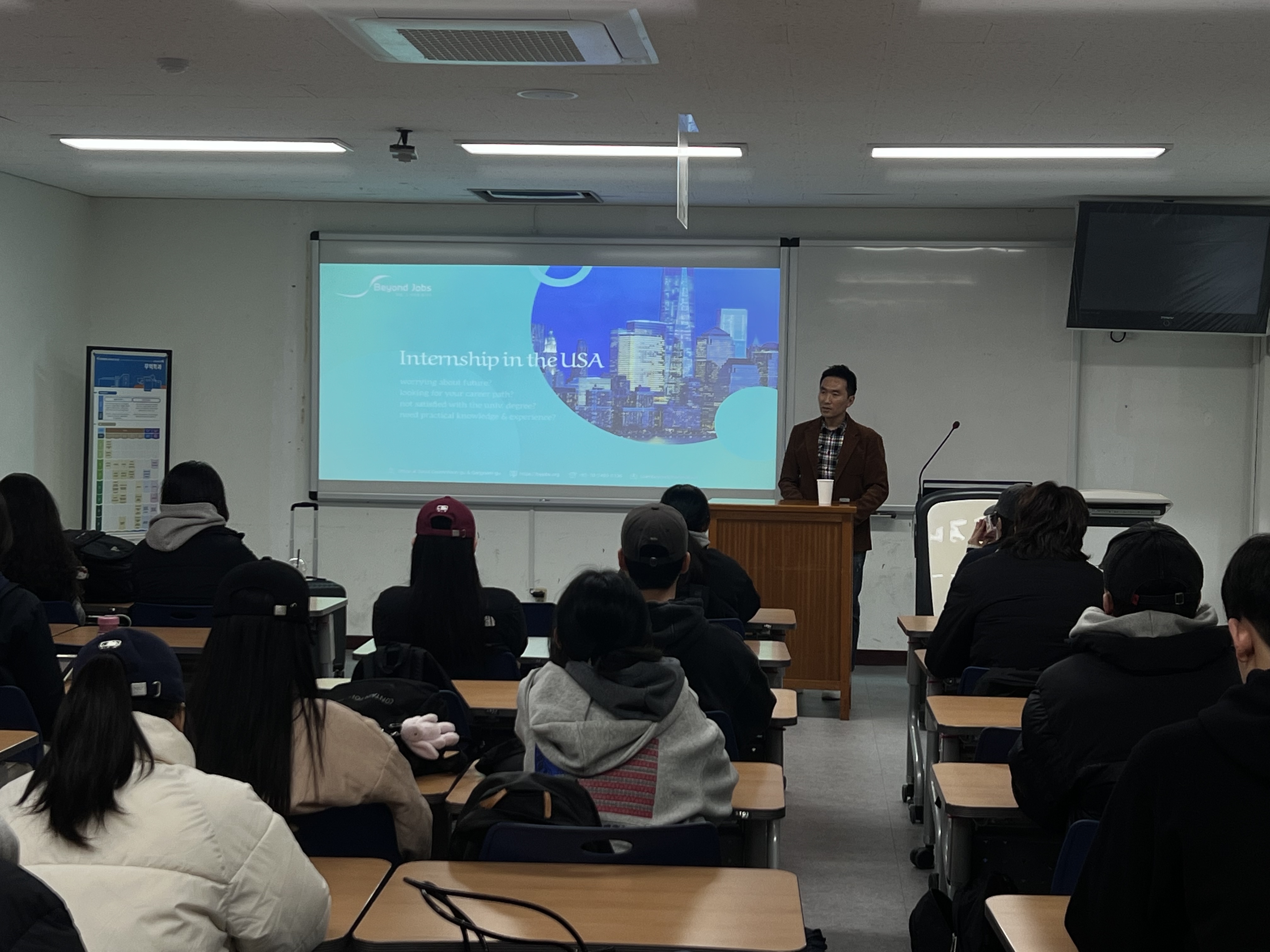 (무역학과 – Team Beyond) 2026년 상반기 미국 무역·물류기업 인턴십 프로그램 설명회 개최강원대학교 강릉캠퍼스 무역학과는 2026년 3월 12일 사회과학대학 306호에서 2026년 상반기 미국 무역 물류기업 인턴십 프로그램 설명회 를 개최하였다. 무역학과가 미국 무역2026.03.12 -